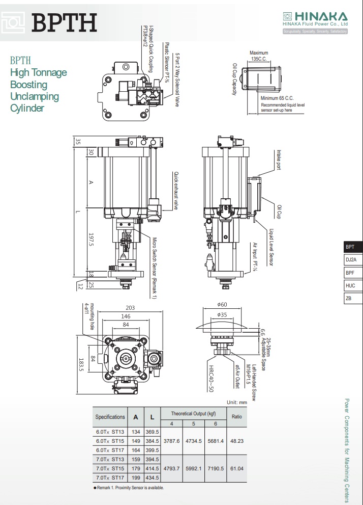 HINAKA BT50 PNEUMATİC CYLİNDER BPTH-10U5S60S15M